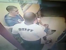 Surveillance camera films the desperate girl taking a piss