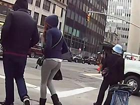 Small skirt on the flabby butt in accidental upskirt