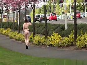 Redhead walking naked in public