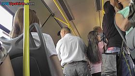 Large-breasted blonde looker gets groped in the bus by a horny man