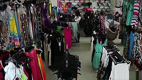Luscious beauty in a colorful dress has her crotch filmed