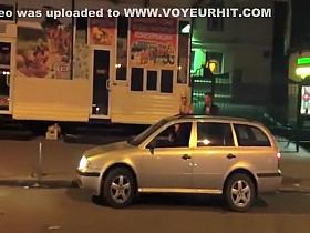 Blonde girl with sexy ass filmed by pervy guy in outdoor