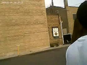 Upskirt voyeur video features a slim chick with a tasty bum.