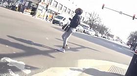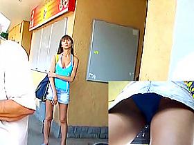 Slim girl in skirt shows her amazing ass in upskirt vid