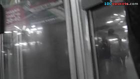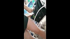 Upskirting voyeur filmed skinny ass of a brunette gal