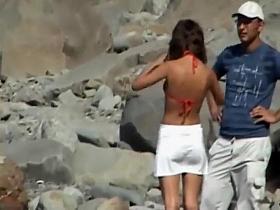 Perky skinny doll loses her pretty top during wicked sharking odyssey
