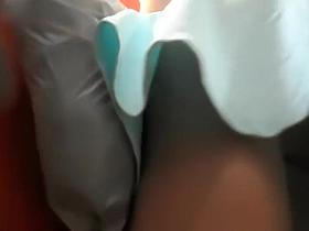 Skinny gal is in a-line skirt in accidental upskirt vid