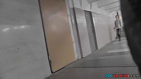 Upskirt shot of bubble ass of a slim slut in mini skirt