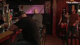 Tied slave fucked in public crowded bar