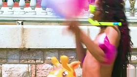 Teen slave bathing in public fountain