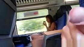 Foxy girl with no panties in the train
