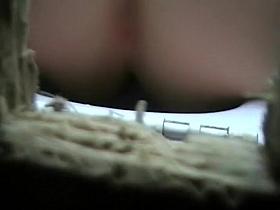 Spying on leaking pussies at a toilet