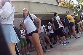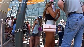 Sexy upskirt of a leggy young babe
