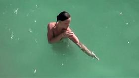 Flabby pussy spied on the beach
