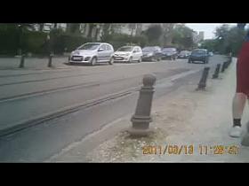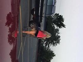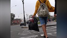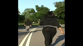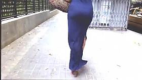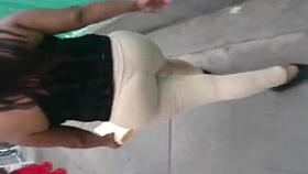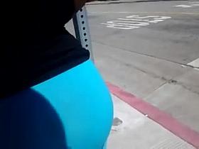 Big butt woman walks the city streets in spandex