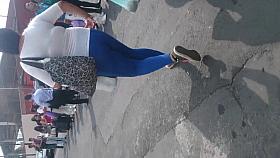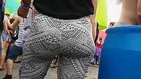 Candid street booty of girl in spandex tight costume 07l