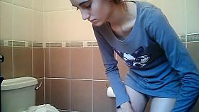 Bathroom spycam video with pregnant woman pissing