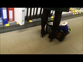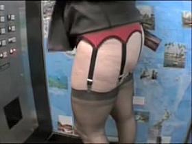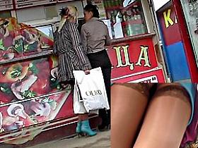 Sexy stockings and bare ass in this upskirt voyeur shot