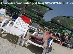 Small boobs teen topless at beach