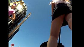 G-string upskirt footage of a chick wearing mini skirt