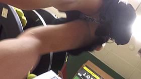 Shopping at supermarket. Upskirted