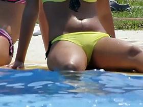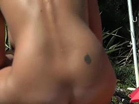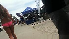 Tanned pierced marvelous babe getting recorded on the nudist beach