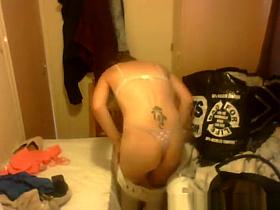 Filming tattooed girlfriend taking off her panties