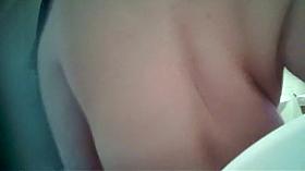 Small boobs tattooed chick caught in bathroom