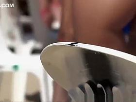 Blowjob in crowded nudist beach