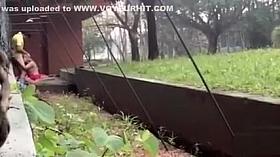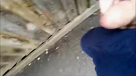 Blonde amateur girl gives her horny guy a nice handjob in the park