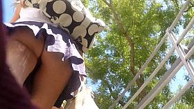 Upskirt of a blue dress girl
