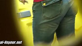 Big booty girl in tight jeans goes pee