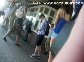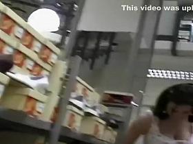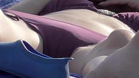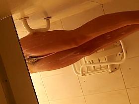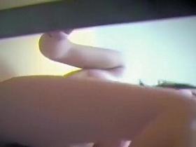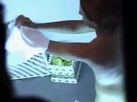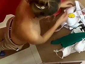 Delicious floozy shows off her big jugs and shaved pubis to a hidden cam