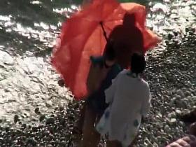 Bold public blowjobs on the beach from sexy wives