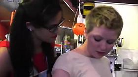 Horny Trinity sucks and fingers her customers wet pussy