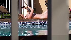Spying a sexy blonde fingering her pussy