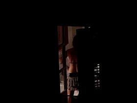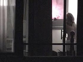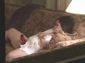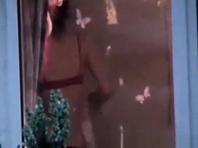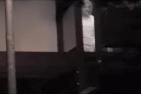 Naughty Kono rubs her pussy by a wall in sexy voyeur movie