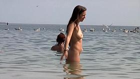 Crazy exhibition on nude beach