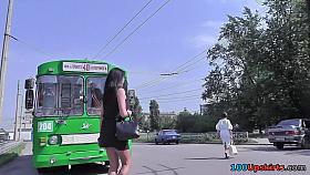 Jeny Smith flashing her perfect tits to strangers on the street while taking a selfie.