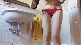Lisa playing at the bathroom