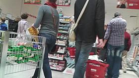 A sweet ass girl in tight pants gets followed by a voyeur
