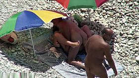 Sunbathing At Naked Beach With Two Couple Sex Voyeur
