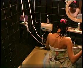 Hot chick in shower shaving her legs with a razor. She has some great tits and a sexy little trimmed bush.