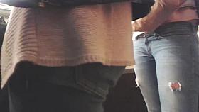 I saw a group of ladies walking around and noticed that one of them was busty as hell and was wearing a shirt that unveiled her cleavage, so I used my iPhone to tape her.