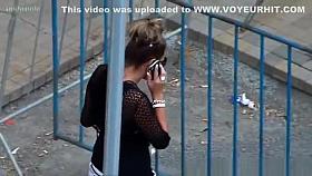 Pretty chick followed by a guy with upskirt camera