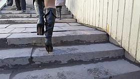 Upskirt hidden cam filmed girl in sexy nylon stockings