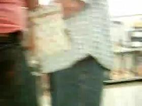 Cute girl was fully distracted by big earphones and loud music so voyeur had no problem circling around her to see her face and then to switch on more intimate parts of her. This hot schoolgirl wore pantyhose under a short skirt and her little ass was quite firm and toned.