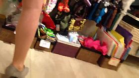 intro of blond upskirt (close up pantyhose) in shop a