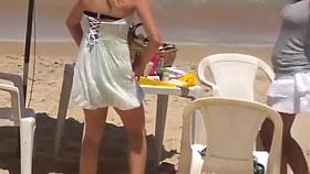 Beach change cabin girl got trimmed cunt and tits spied