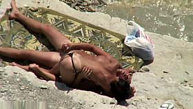 Ethnic teen with small tits gets fucked doggystyle by huge ro